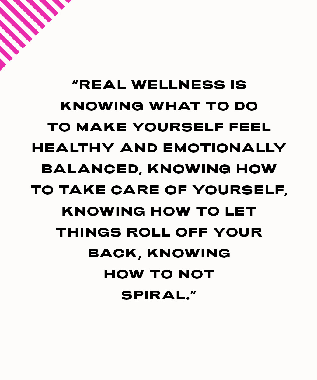 Definitely. What it meant to be beautiful was much more binary when I was growing up. The hot girl on the cool show tended to look the same—she was usually white, straight, slim, and had hair that hung down (mine floats). And that’s just not the real picture. There are so many types of beautiful, SO many. It’s such a better, more interesting world when we—the media—show all those different types of beautiful. Wellness shouldn’t be this exclusive, expensive thing. Real wellness is knowing what to do to make yourself feel healthy and emotionally available, to know how to take care of yourself, to know how to let things roll off your back, to know how to not spiral. I do love goop for that, it’s an amazing resource, and all the content—Q and As with doctors and psychologists and mindfulness gurus—is free.