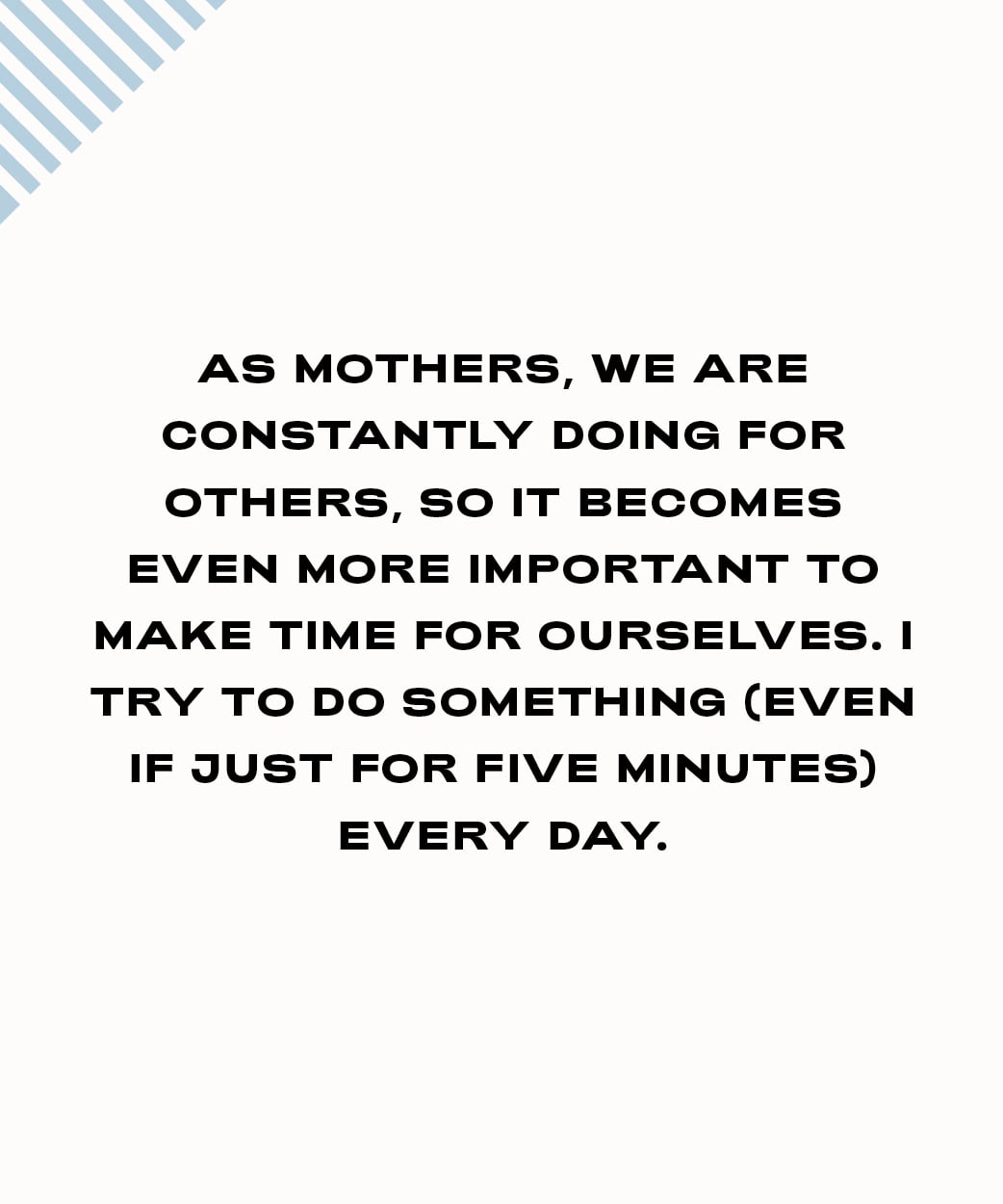 Yoga or taking time for myself. I feel the most out of balance when I don’t take time to recharge. As mothers, we are constantly doing for others, so it becomes even more important to make time for ourselves. I try to do something (even if just for five minutes) every day.