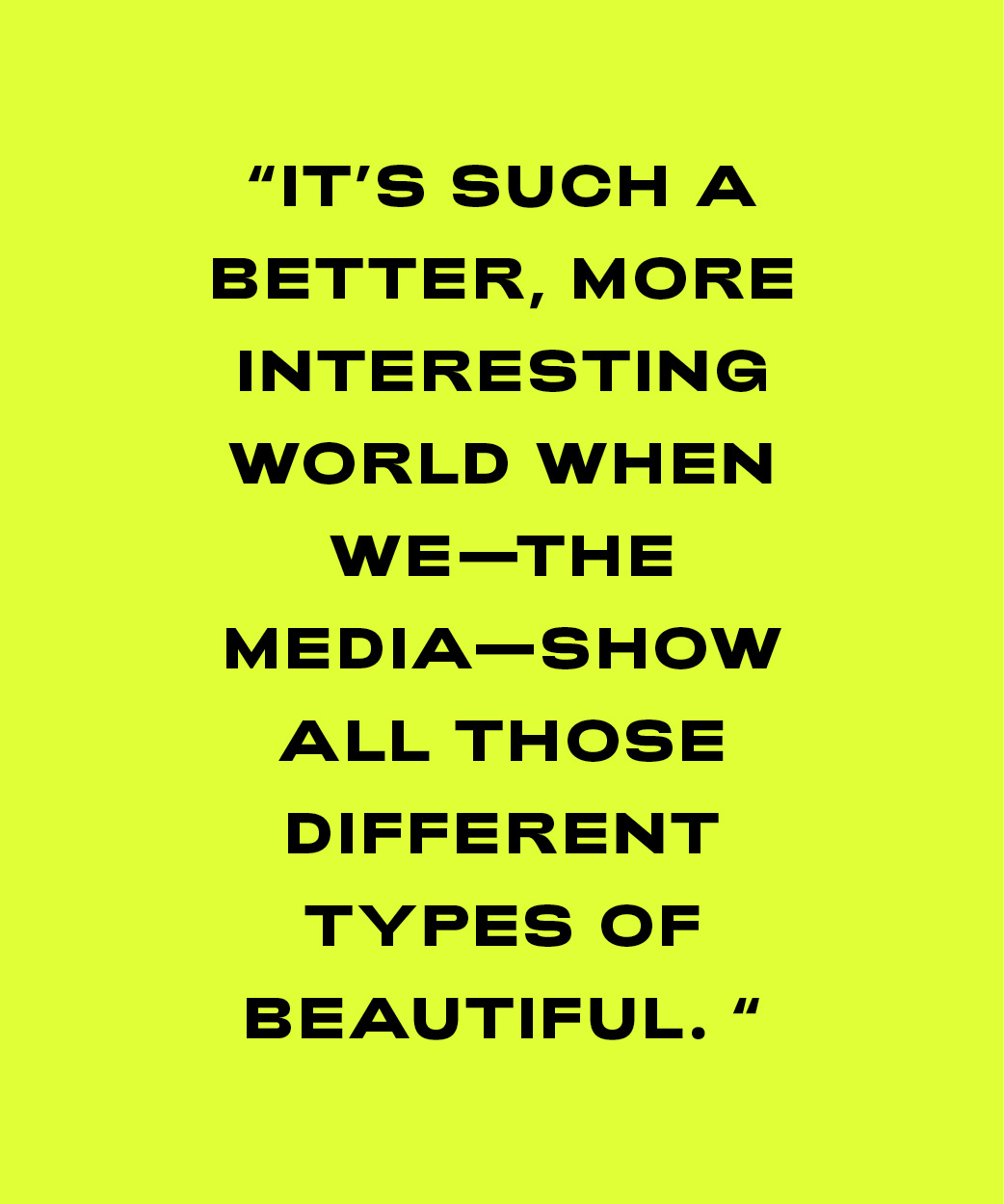 Definitely. What it meant to be beautiful was much more binary when I was growing up. The hot girl on the cool show tended to look the same—she was usually white, straight, slim, and had hair that hung down (mine floats). And that’s just not the real picture. There are so many types of beautiful, SO many. It’s such a better, more interesting world when we—the media—show all those different types of beautiful. Wellness shouldn’t be this exclusive, expensive thing. Real wellness is knowing what to do to make yourself feel healthy and emotionally available, to know how to take care of yourself, to know how to let things roll off your back, to know how to not spiral. I do love goop for that, it’s an amazing resource, and all the content—Q and As with doctors and psychologists and mindfulness gurus—is free.