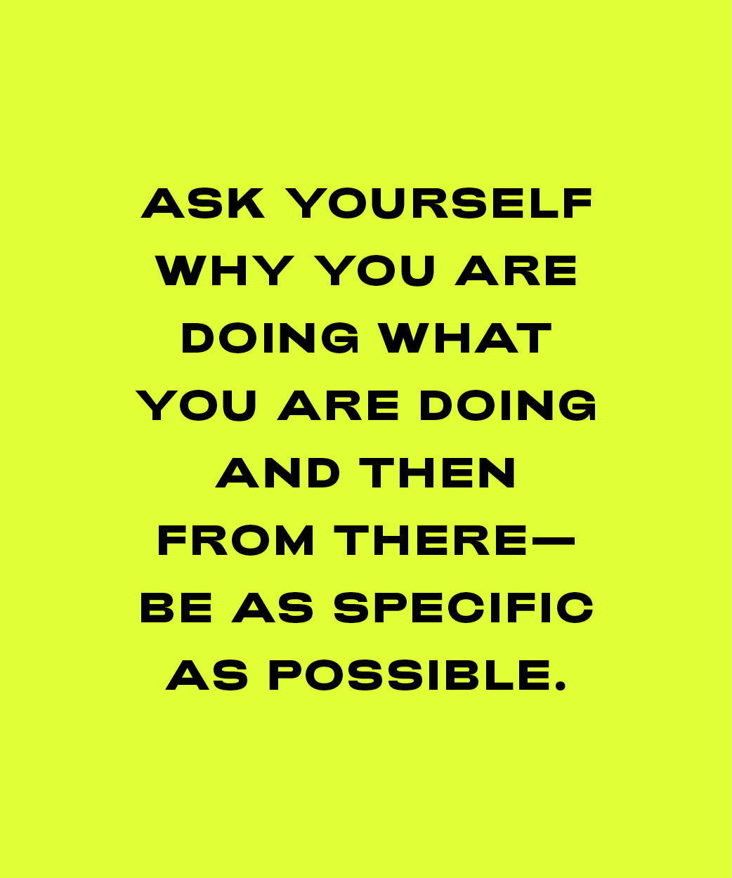 Ask yourself why (see! obsessed..) you are doing what you are doing and then from there— be as specific as possible. Our overly-connected society has created so much competition for attention. Make sure if you are adding noise you are also adding substance and value vs. just more noise.