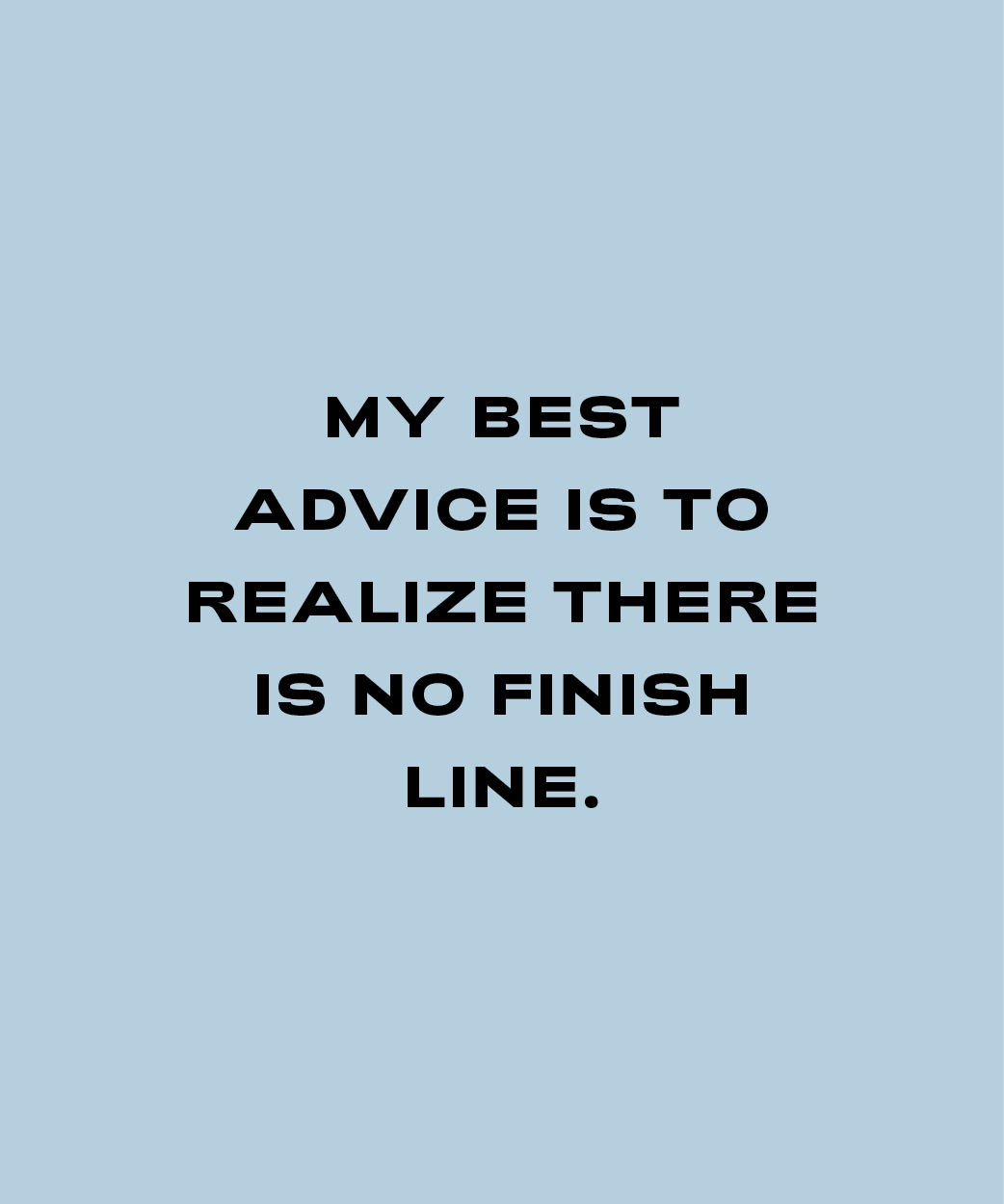 My best advice is to realize there is no finish line. That your journey should have ups and down and rewards and setbacks as all those experiences will help you determine the boss you want to be. Remember to play the long game!