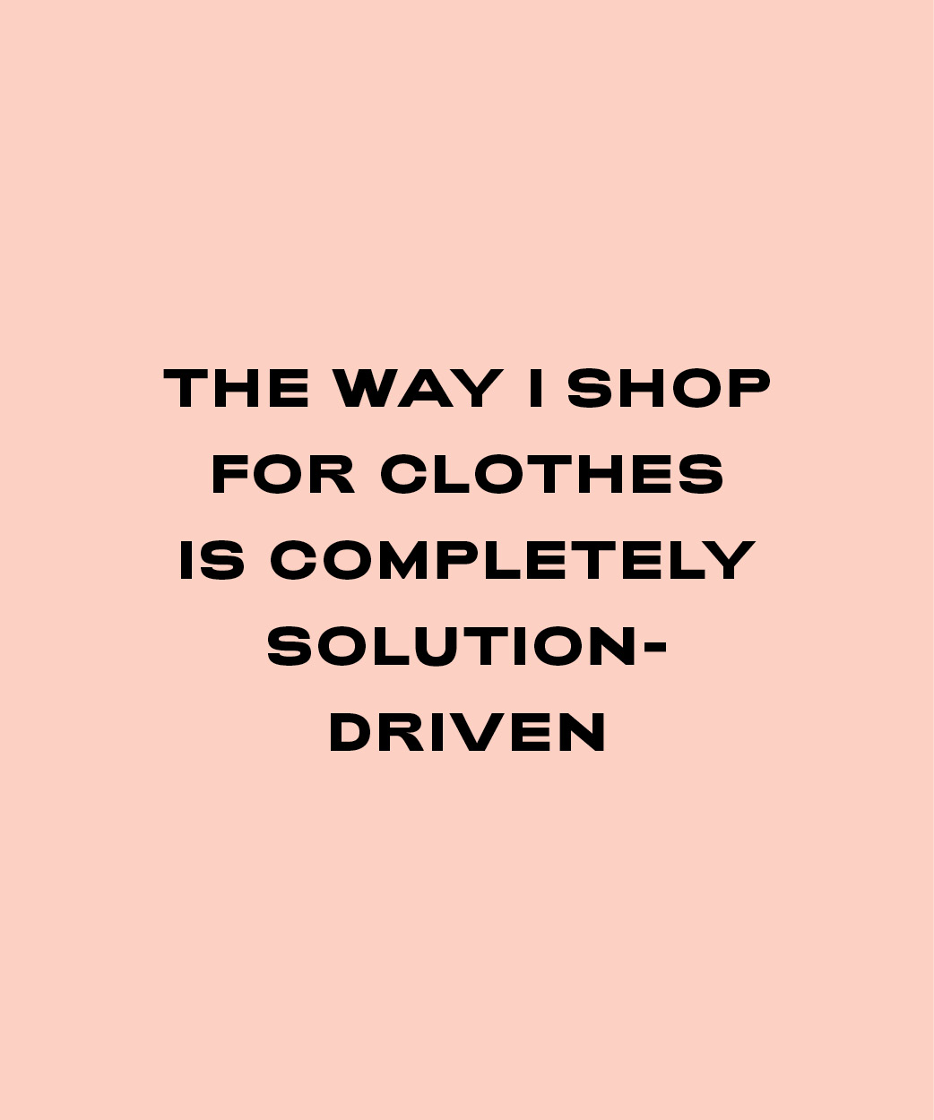 The way I shop for clothes is completely solution-driven; everything I wear needs to be appropriate for the many situations I’m in each day, make me feel comfortable and be interchangeable so I don’t have to think about it... while buying as little as possible. The business that I’m in is all about the customer so the less focus on what I’m wearing the better.